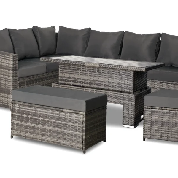 Zestaw Mebli Ogrodowych Malaga Zestaw Ogrodowy z technorattanu Narożnik Stolik regulowany Pufy