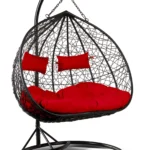 Fotel wiszący Lila 2 Pro czarny stelaż czarny kosz poduszka malinowa