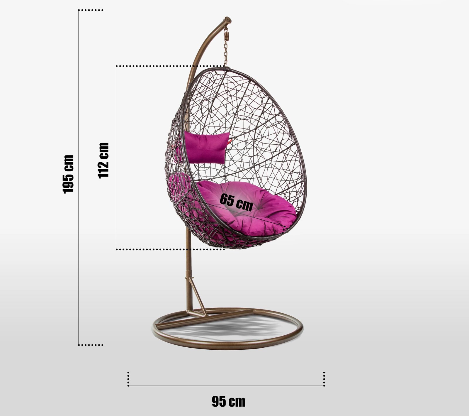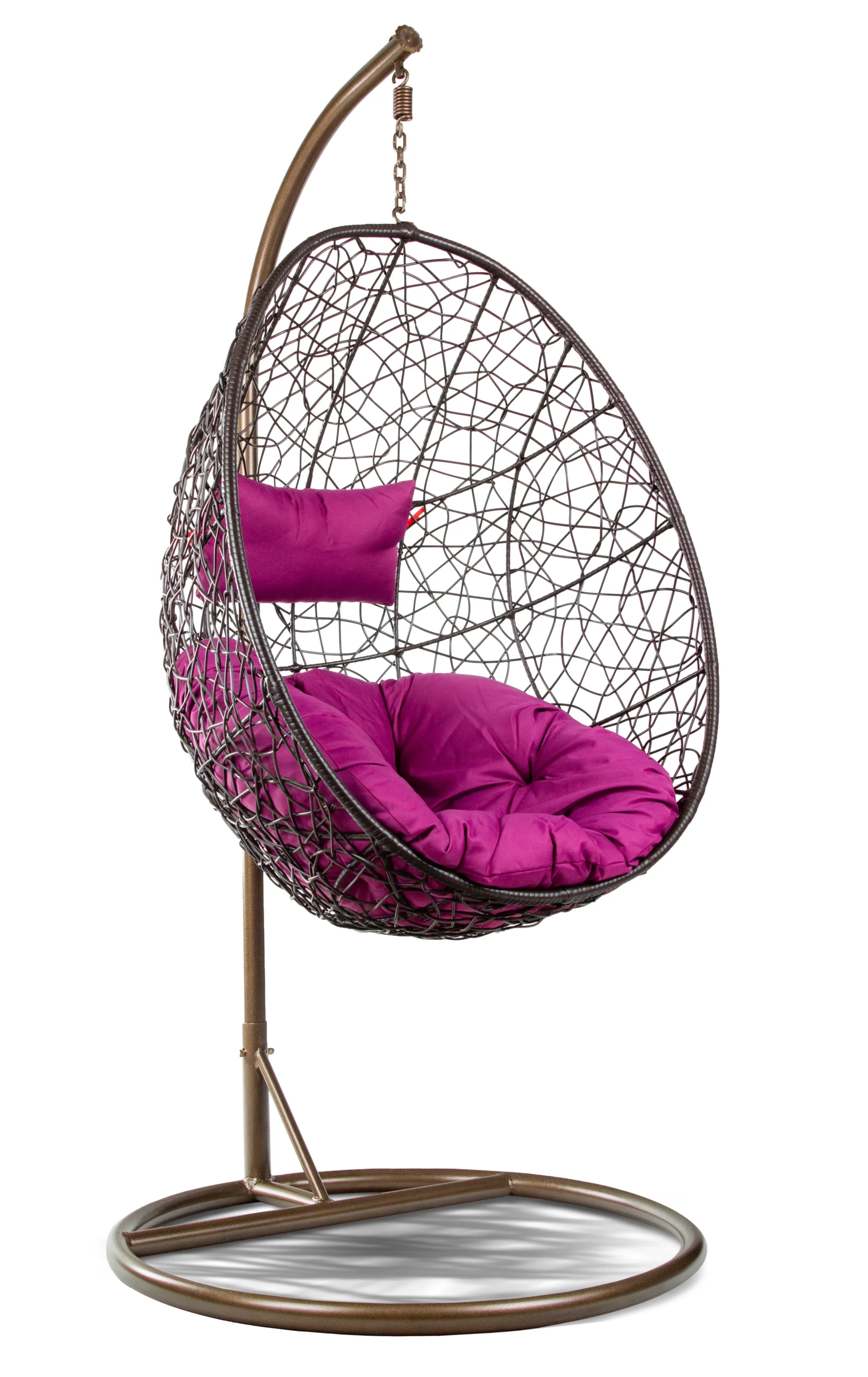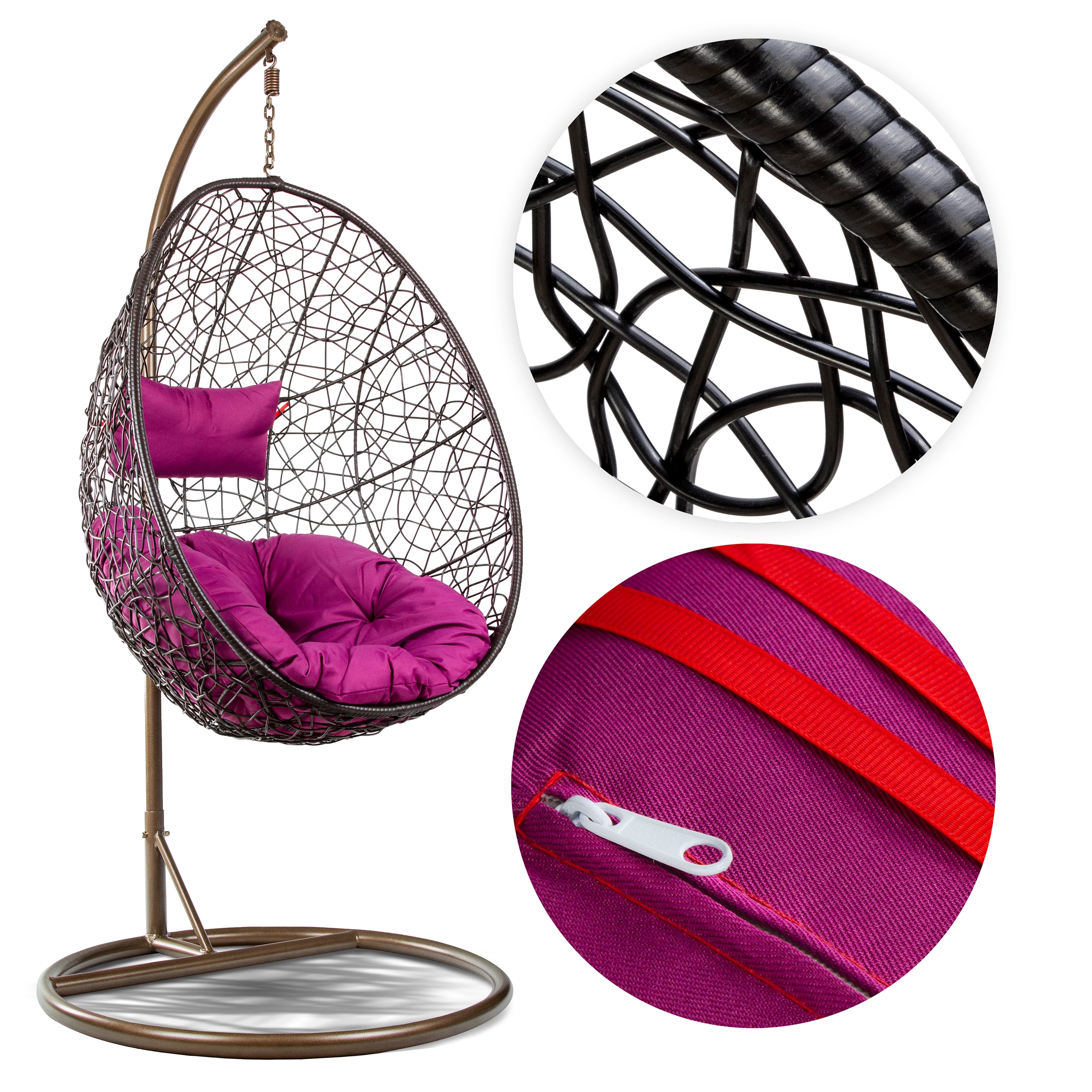 Eleganckie meble o oryginalnym wzornictwie i najnowszej kolorystyce poduch – biskupi fiolet. Hitem są obszycia czerwoną nicią i wstążkami! Oryginalny fotel pleciony z technorattanu. Idealna forma relaksu i rozrywki pod ażurową osłoną. Fotel wiszący jest łatwy w czyszczeniu i prosty w mocowaniu. Nadaje się na balkony i do wnętrz.