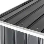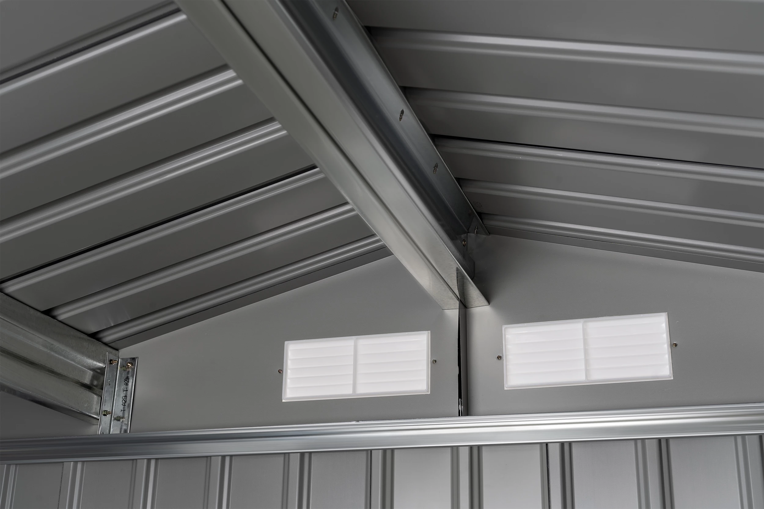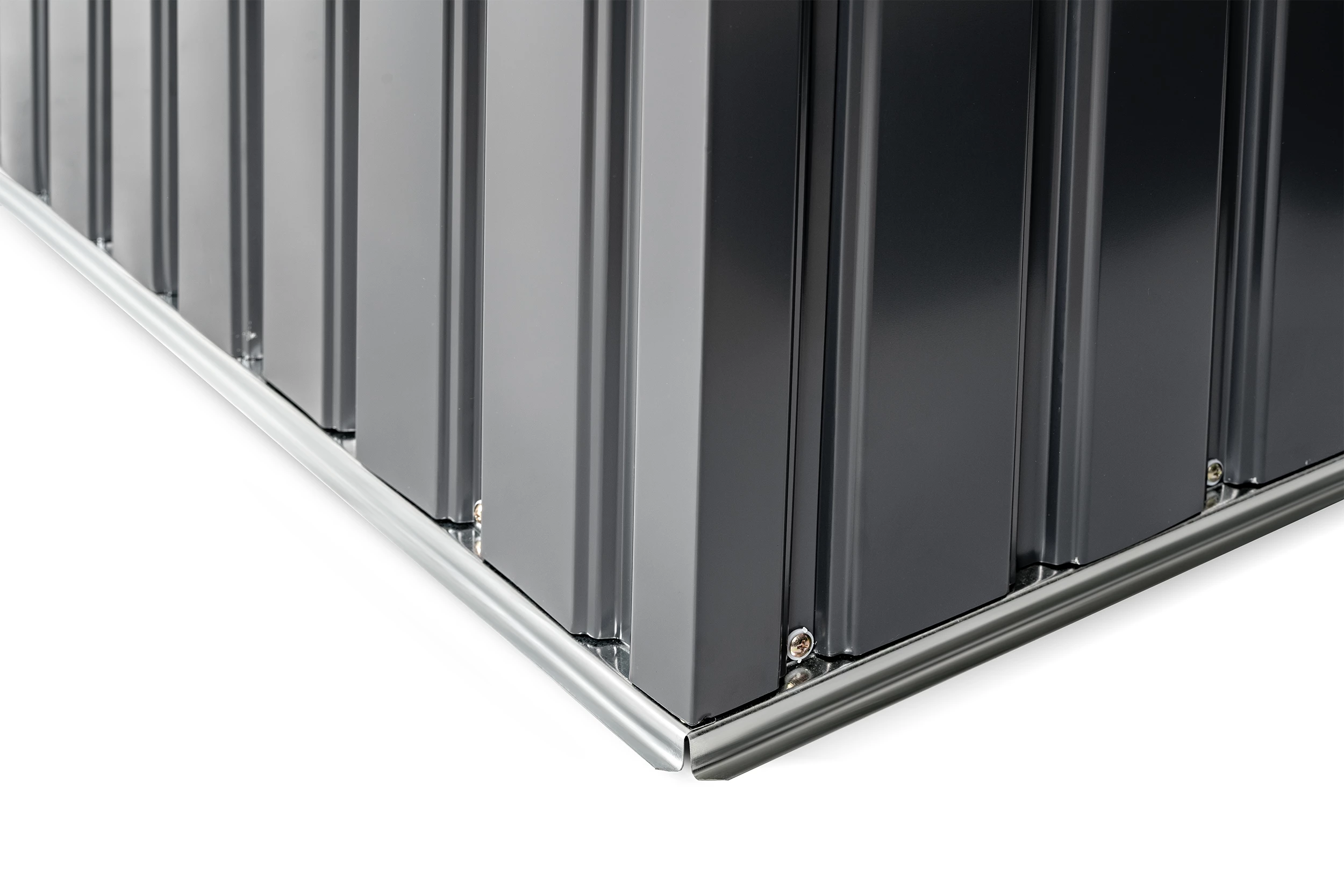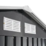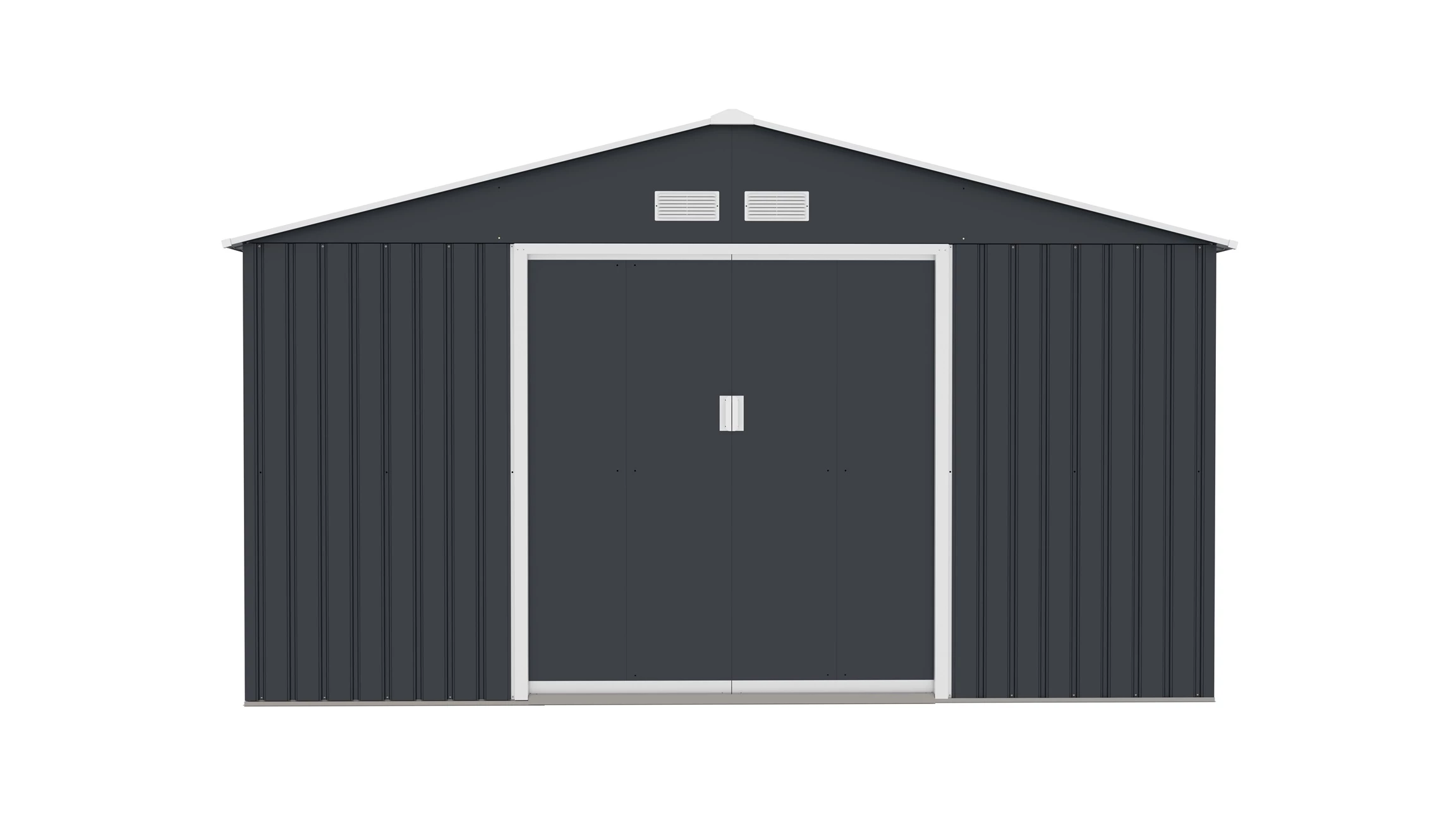 Do domku ogrodowego prowadzą dwoje przesuwnych drzwi zamontowanych na prowadnicach. Szopa na narzędzia ma podstawę ze stali ocynkowanej. Jest odporna na warunki atmosferyczne, wodoodporna, a powierzchnia pokryta folią ochronną.
