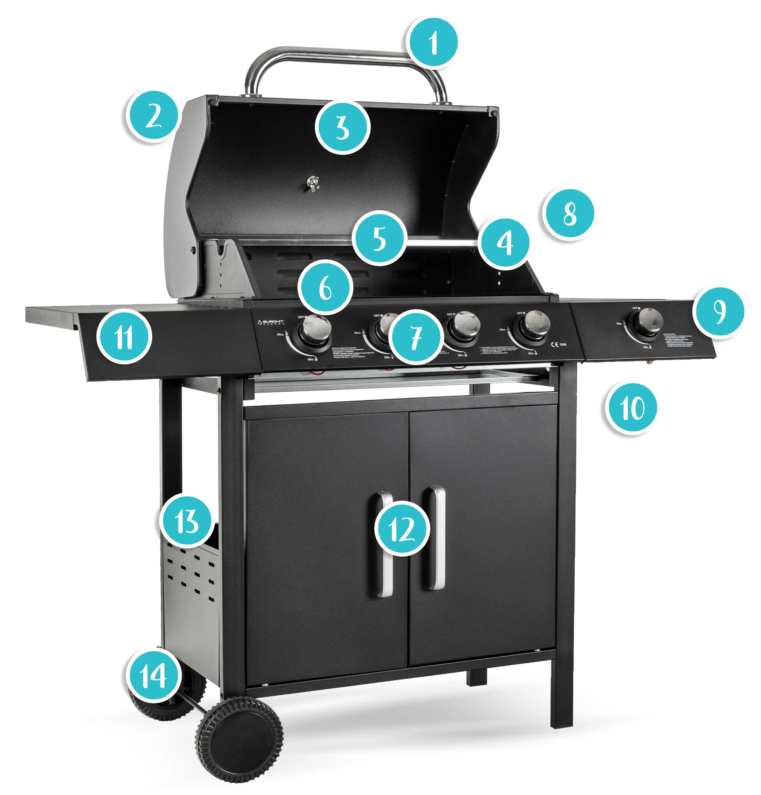 Grill Ogrodowy Gazowy Mike 4 palniki +1 EUROHIT GARDEN wózek