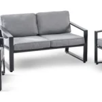 - Ilość elementów zestawu – 4: stolik kawowy , 2 fotele i sofa dwuosobowa