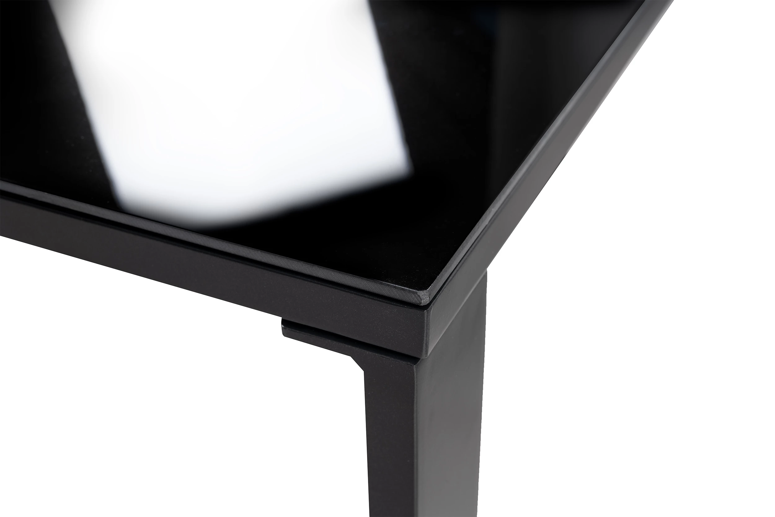 - Materiał stolika – Alumioniowa rama , blat ze szkła hartowanego w kolorze czarnym
