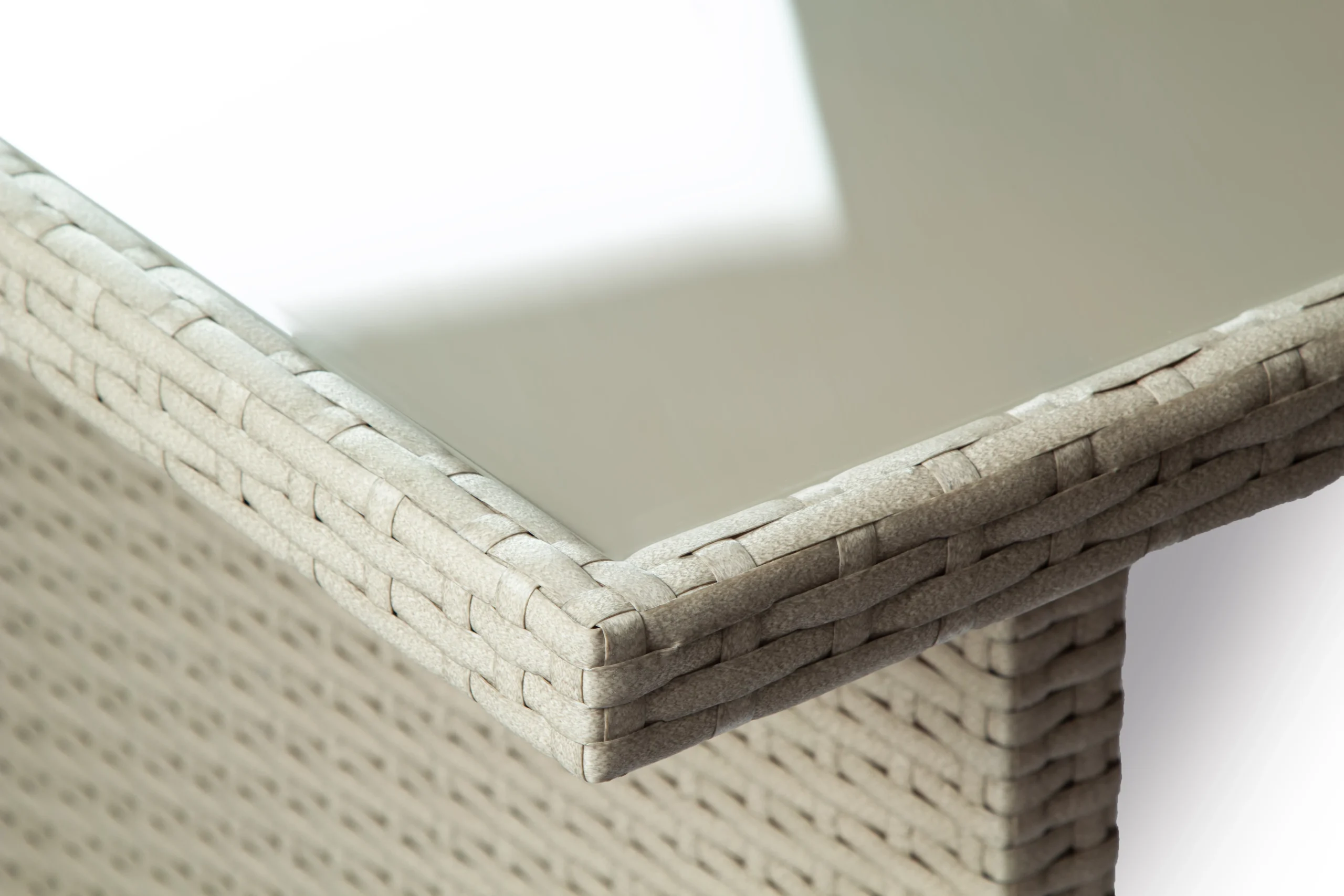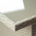 - Materiał stołu – technorattan oplatający stal z szybą mleczną