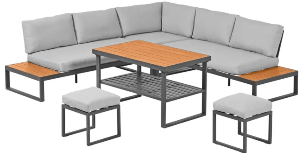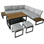 Zestaw mebli MOSTAR narożnik + stół + 2 PUFY Aluminium