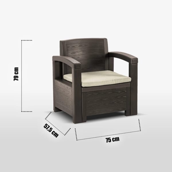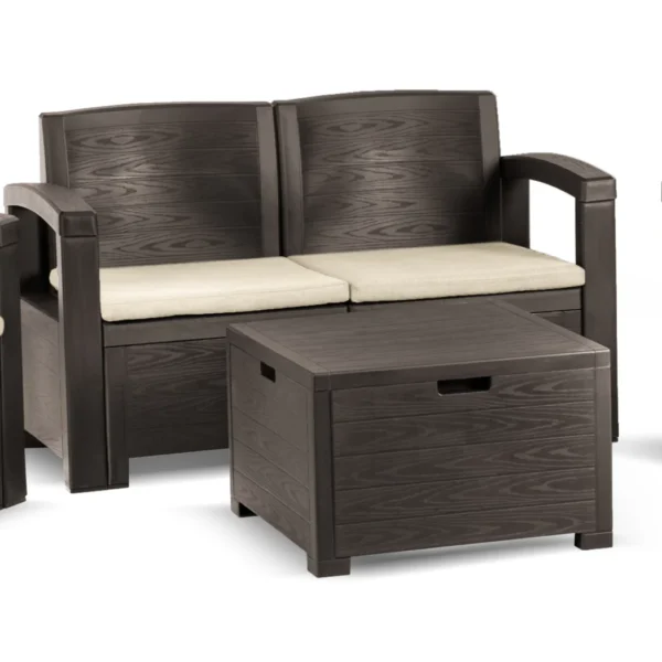 Zestaw cechuje się użyciem wysokiej jakości odpornych na warunki atmosferyczne materiałów plecionego technorattanu. Technologia wykonania pozwoliła na uzyskanie trwałości i szykownego, śródziemnomorskiego stylu. Zastosowane tworzywo zapewnia dużą wytrzymałość na obciążenie i maksymalną odporność na czynniki zewnętrzne jak niekorzystne promienie UV.