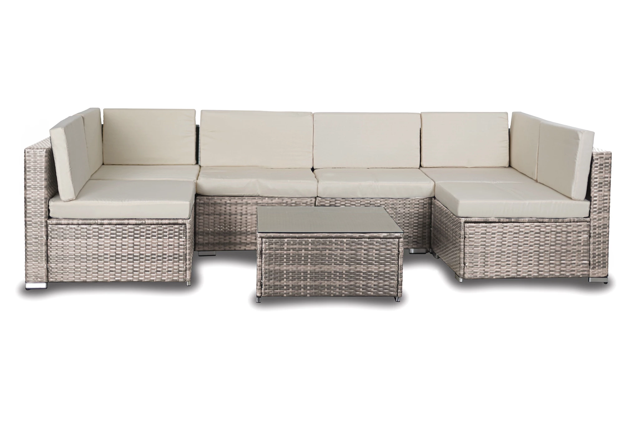 Zestaw Pedr składa się ze stołu ze szklanym blatem, narożnej sofy typu L oraz zestawu poduszek na siedzisko. Meble wyróżniają się nowoczesnym wzornictwem w aranżacji ogrodów. Świetnie się komponują się w wymarzonym wnętrzu ogrodowym oraz na słonecznym tarasie.