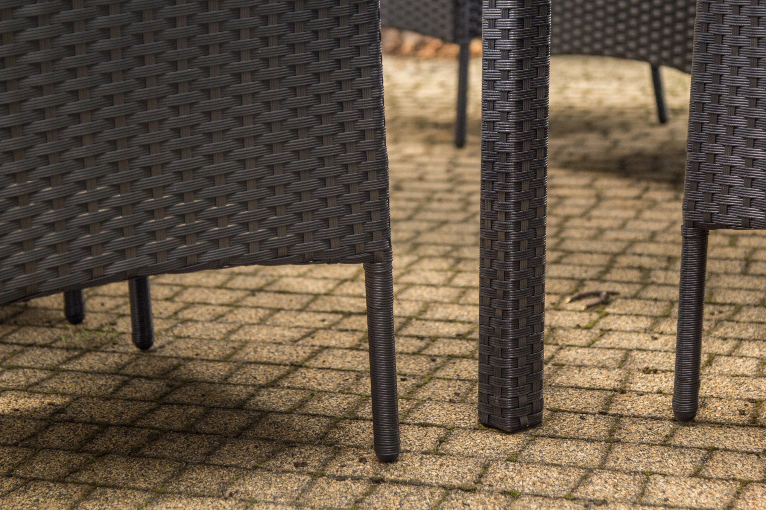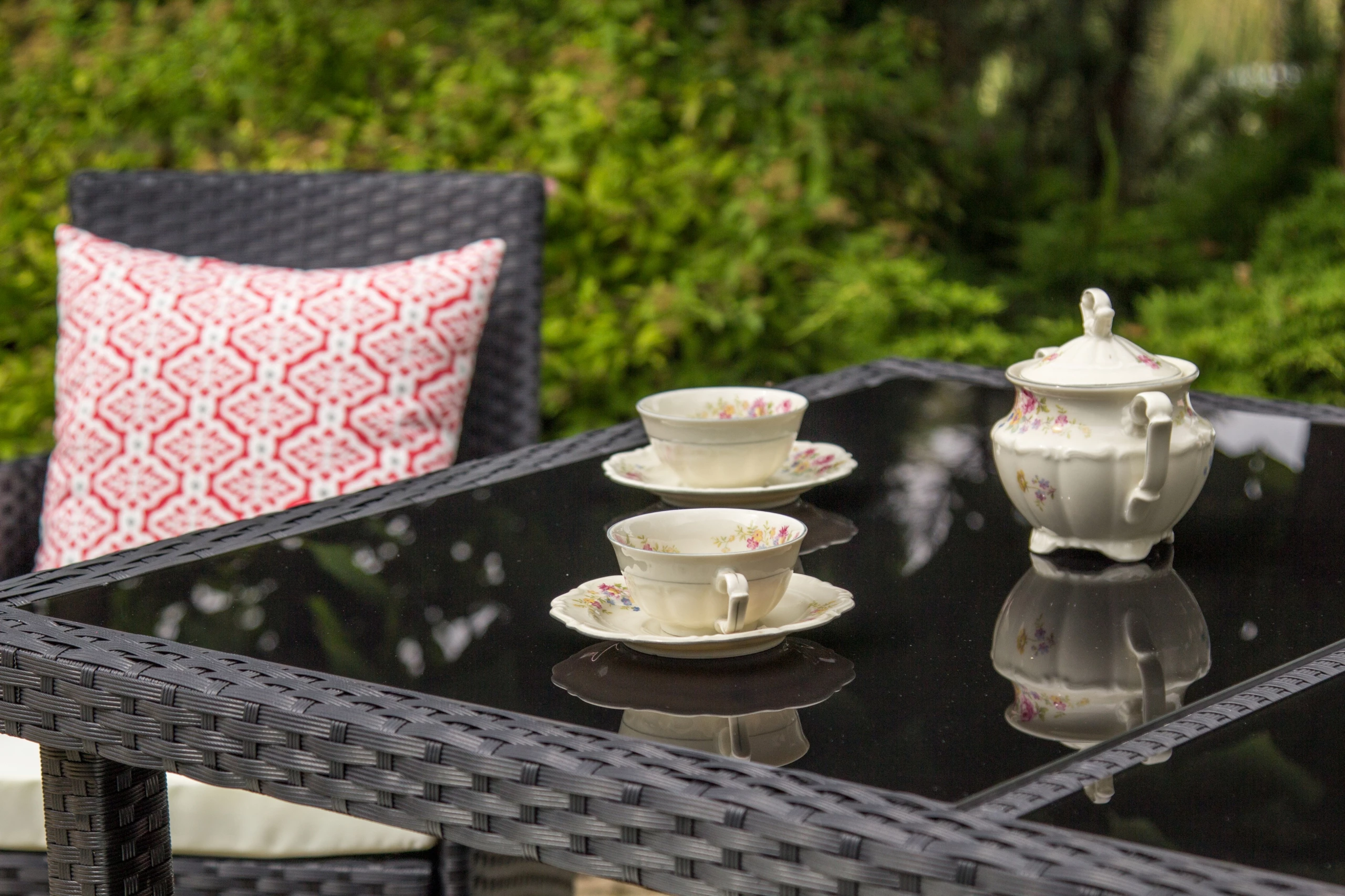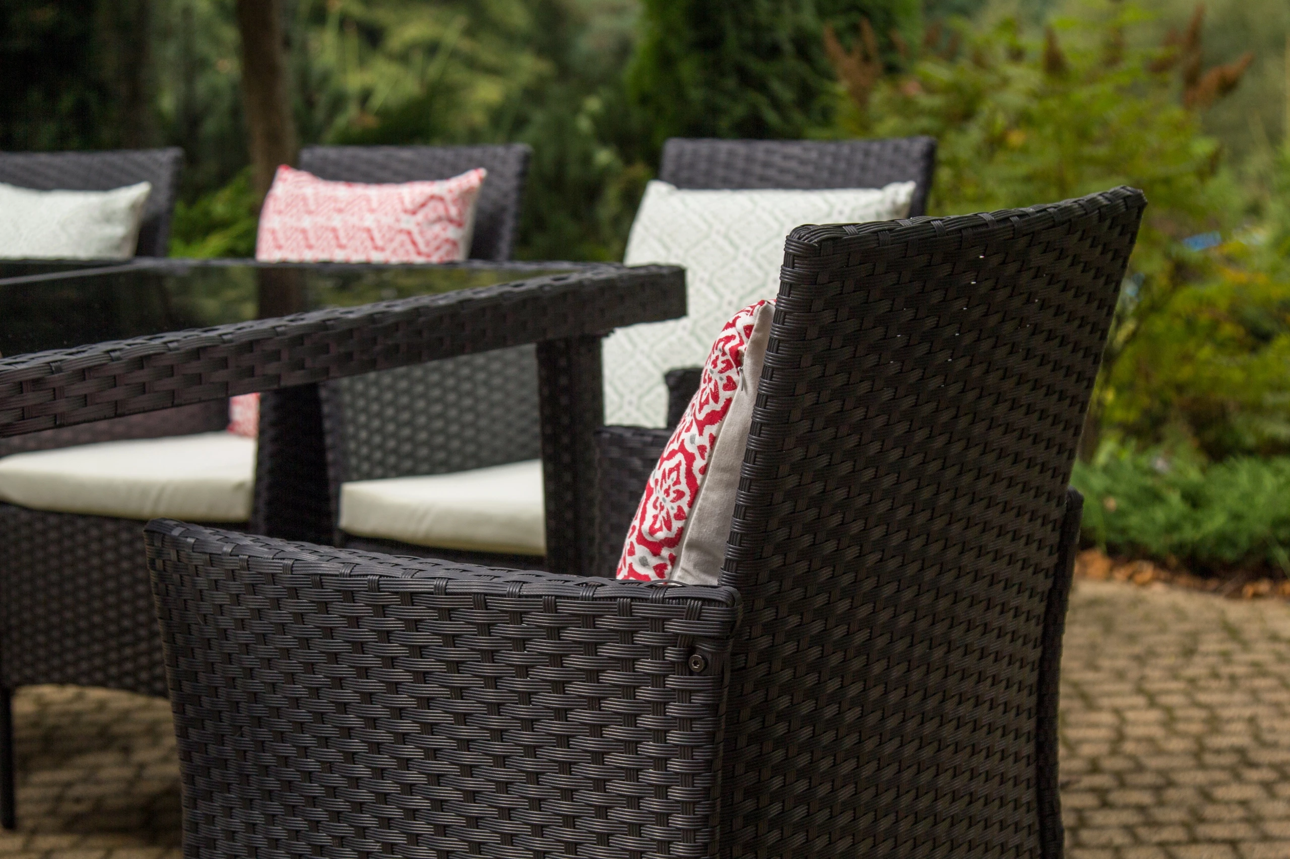 Komfortowy zestaw wypoczynku może służyć również jako aranżacja jadalni. Zestaw jest wytrzymały poprzez zastosowanie materiałów najwyższej jakości. Meble są wykonane z tworzyw sztucznych – wysokiej jakości PE oraz rattanu efekt.