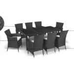 - Zestaw – 1x Stół (szkło hartowane), 8x Fotel