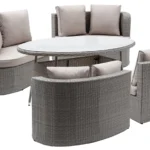 - Ilość elementów zestawu – 5: 4 sofy z poduszkami, stół