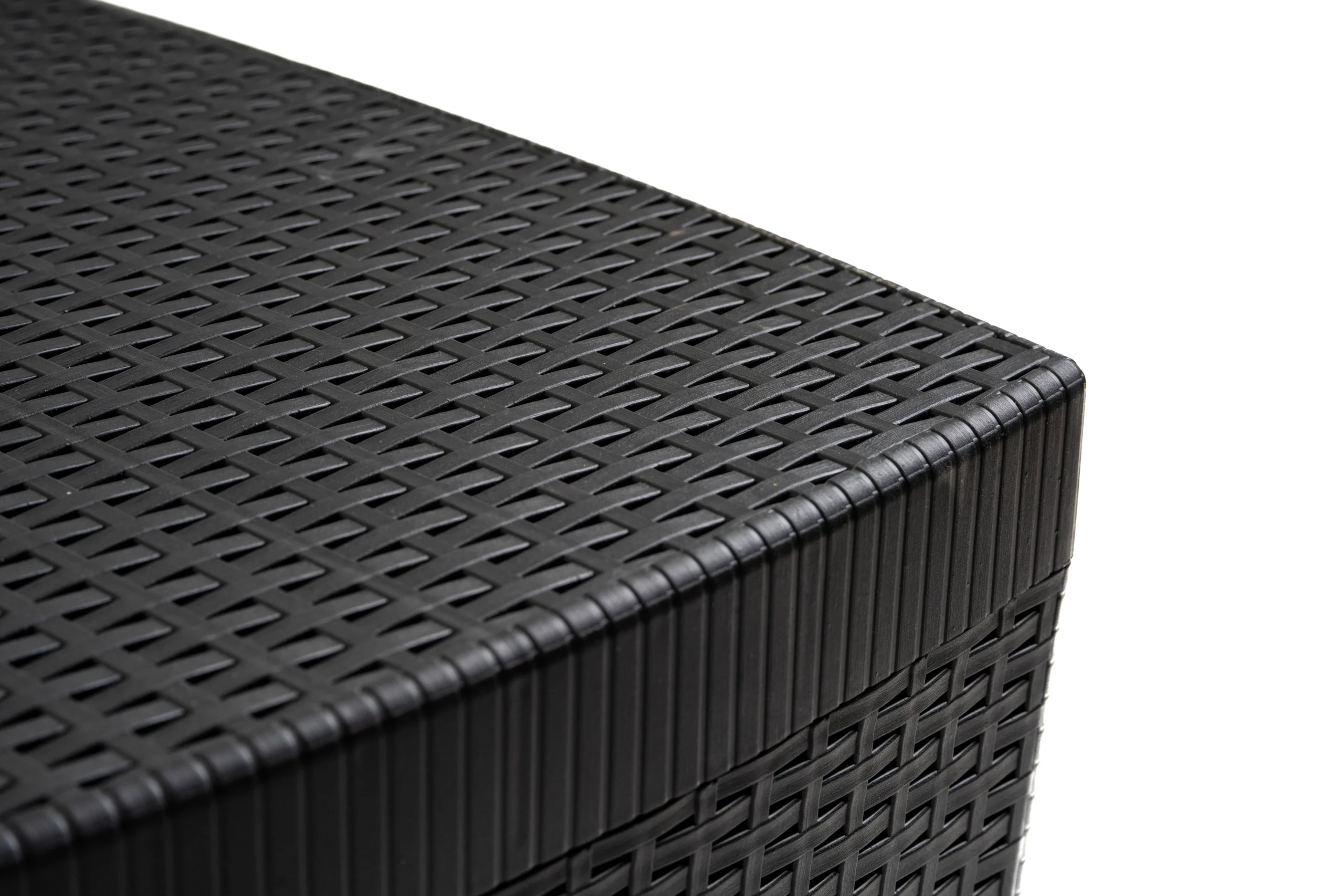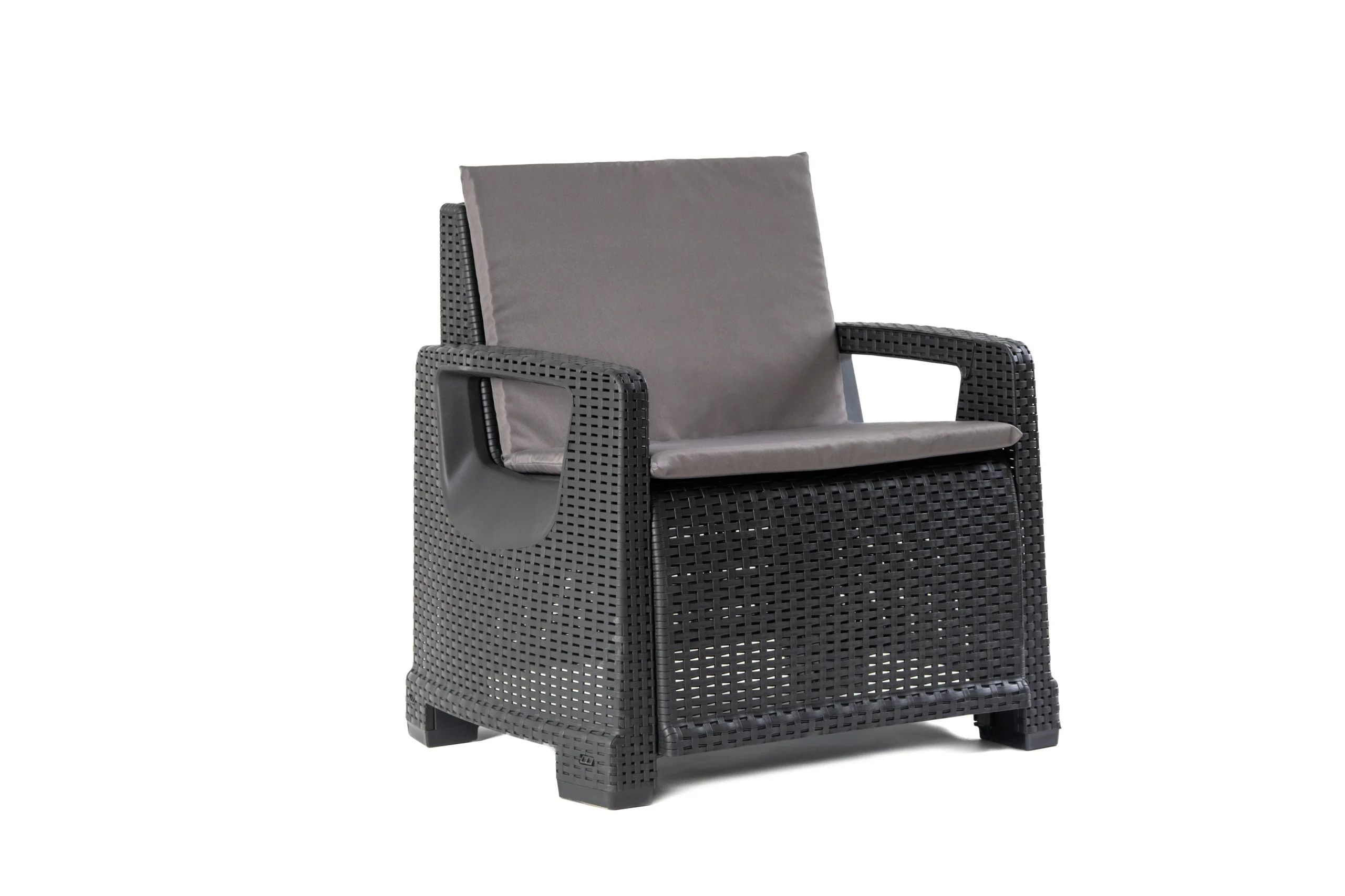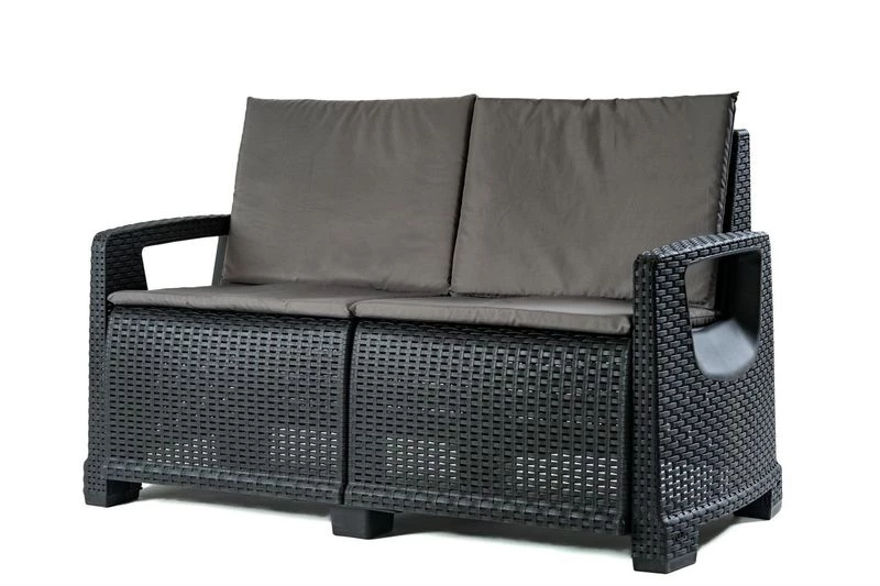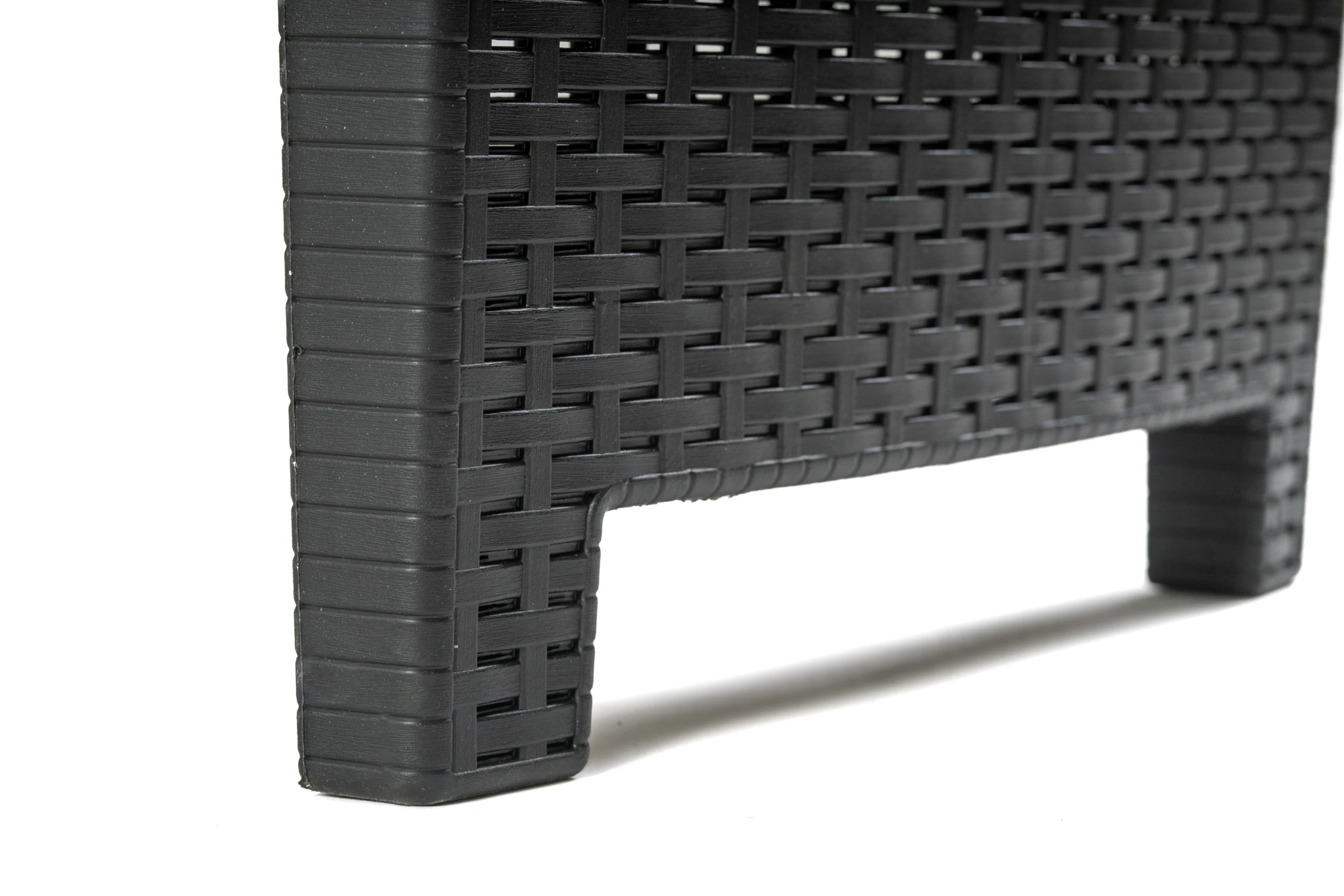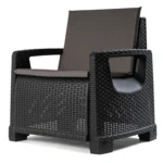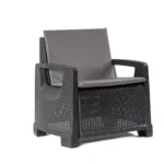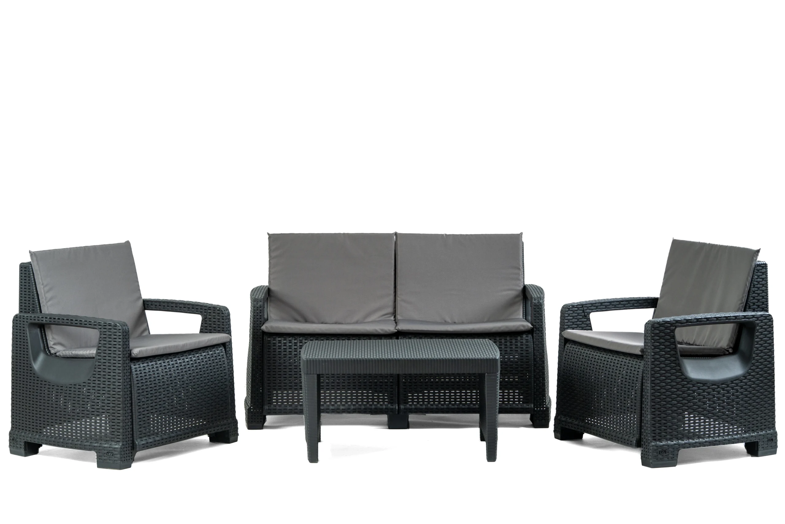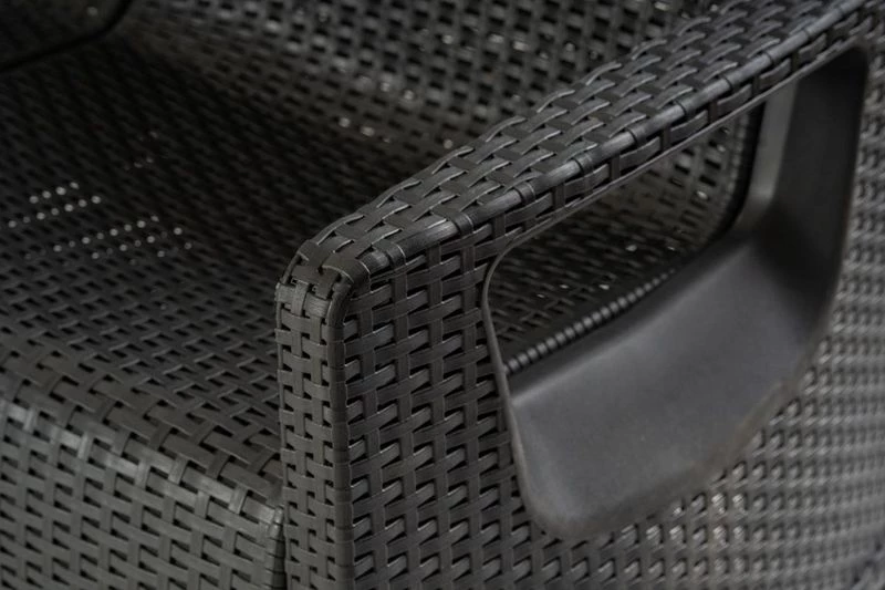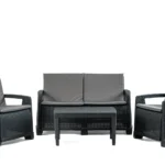 Zestaw został wyposażony w stolik kawowy oraz 2 fotele i sofę. Solidne wykonanie elementów gwarantuje komfort użytkowania. Nowoczesny design podnosi estetykę otoczenia i doskonale współgra z wnętrzem ogrodowym.