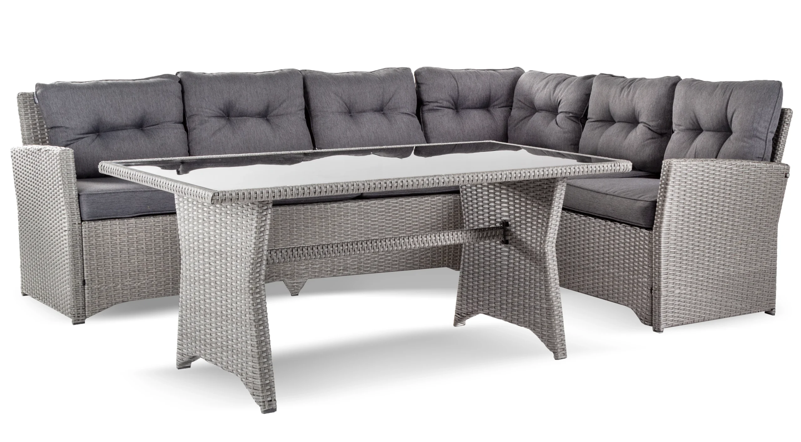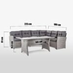 Zestaw Tulsa© składa się z narożnej sofy plus stolik. Meble wyróżniają się nowoczesnym wzornictwem w aranżacji ogrodów. Świetnie się komponują się w wymarzonym wnętrzu ogrodowym oraz na słonecznym tarasie.